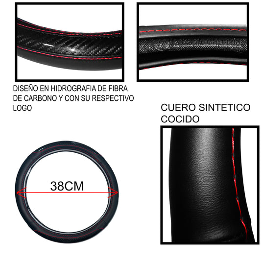 Cubre Volante Negro Costuras Rojas Vehículo Varias Marcas